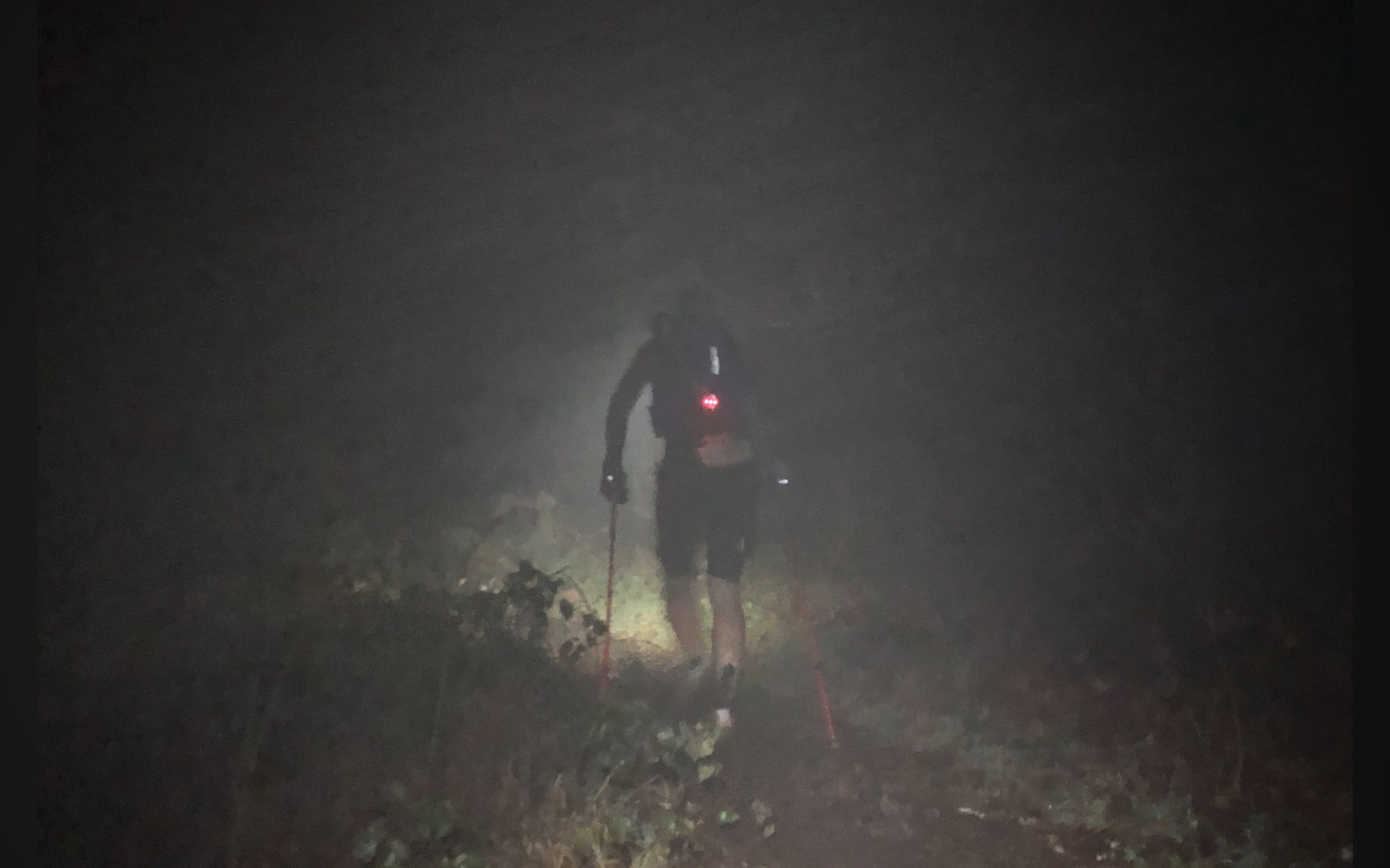 Gehavend maar zo goed opgelapt als mogelijk, verlaat ik CP4 in de avondzon. Mijn voeten zijn inmiddels dermate uitgezet dat een aantal blaren fors tegen de binnenkant van mijn schoenen drukken. Om mijn tenen wat meer ruimte te bieden trek ik mijn dikke waterdichte sokken uit en let ik vanaf nu extra goed op om plassen en modder te vermijden. Daarnaast zoek ik naar vlakke plekken zonder stenen of wortels om zo de pijn in mijn scheen te minimaliseren. Dit alles leidt ertoe dat ik urenlang bezig ben om elke voetstap zo goed mogelijk te plaatsen en daar word ik langzaam maar zeker kierewiet van.
