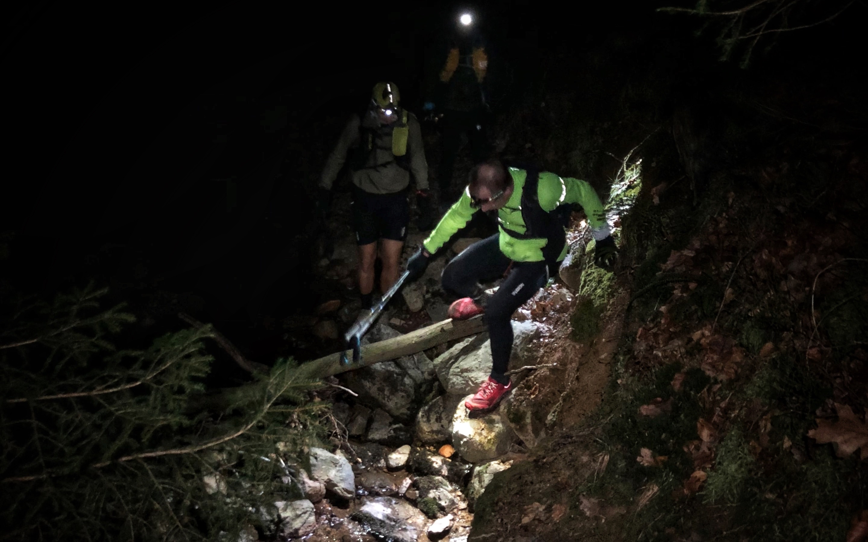 De race begint met heerlijk technische stukken langs de Ourthe en het is een feest om ‘s nachts langs haar sprookjesachtige oevers te klauteren. Af en toe maakt het bos plaats voor een dorpje en met elk dorp wat we passeren wordt het stiller tot het moment dat de straten uitgestorven zijn en de lucht van frituur het enige teken van menselijk leven is.