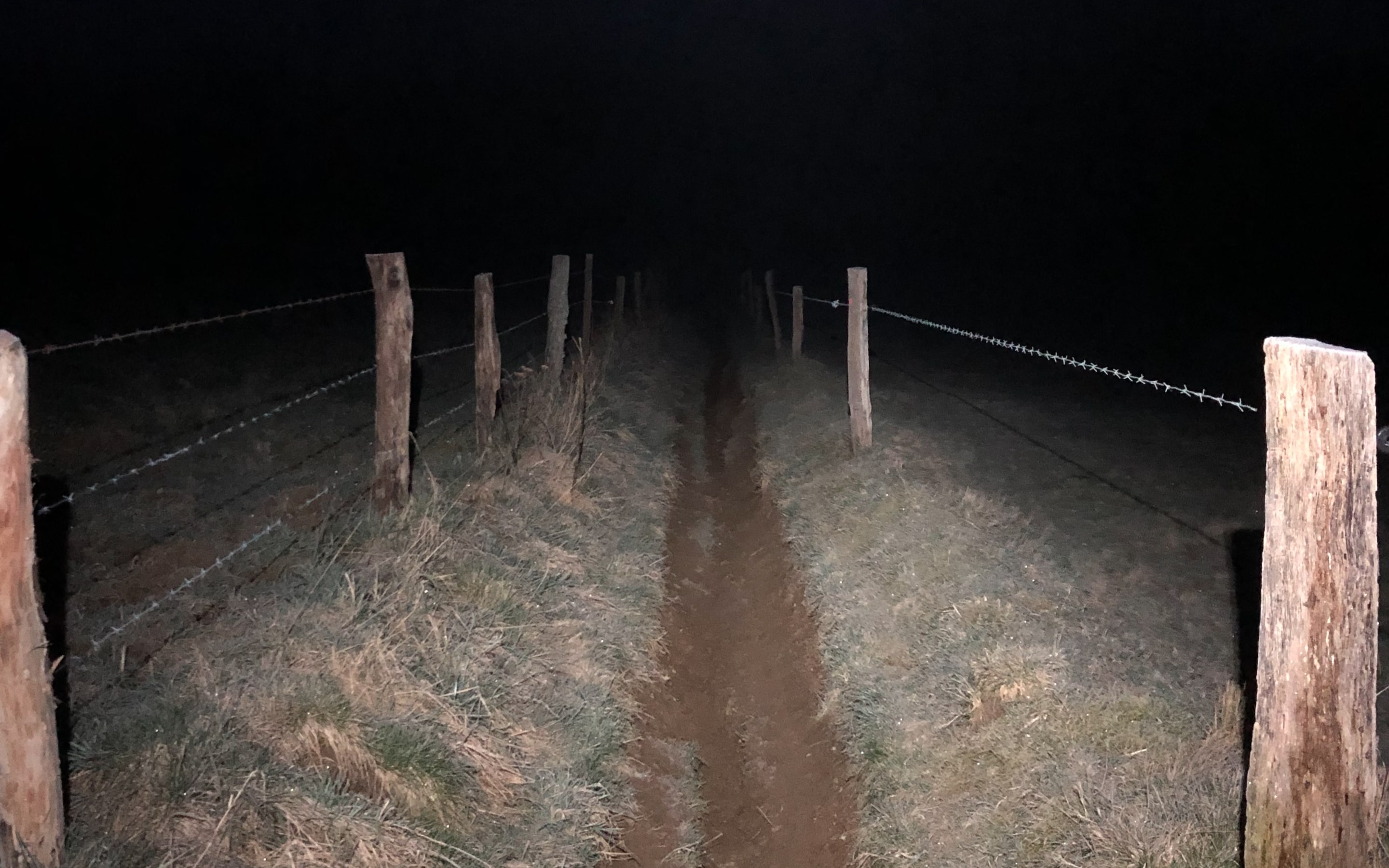 Bedekt in dennennaalden kom ik aan op CP3. Het is middernacht dus ik besluit om buiten bij het checkpoint een uurtje in de bivakzak te slapen. Ik zoek een mooi plekje uit in een weiland en sluit mijn ogen onder een prachtige sterrenhemel.
